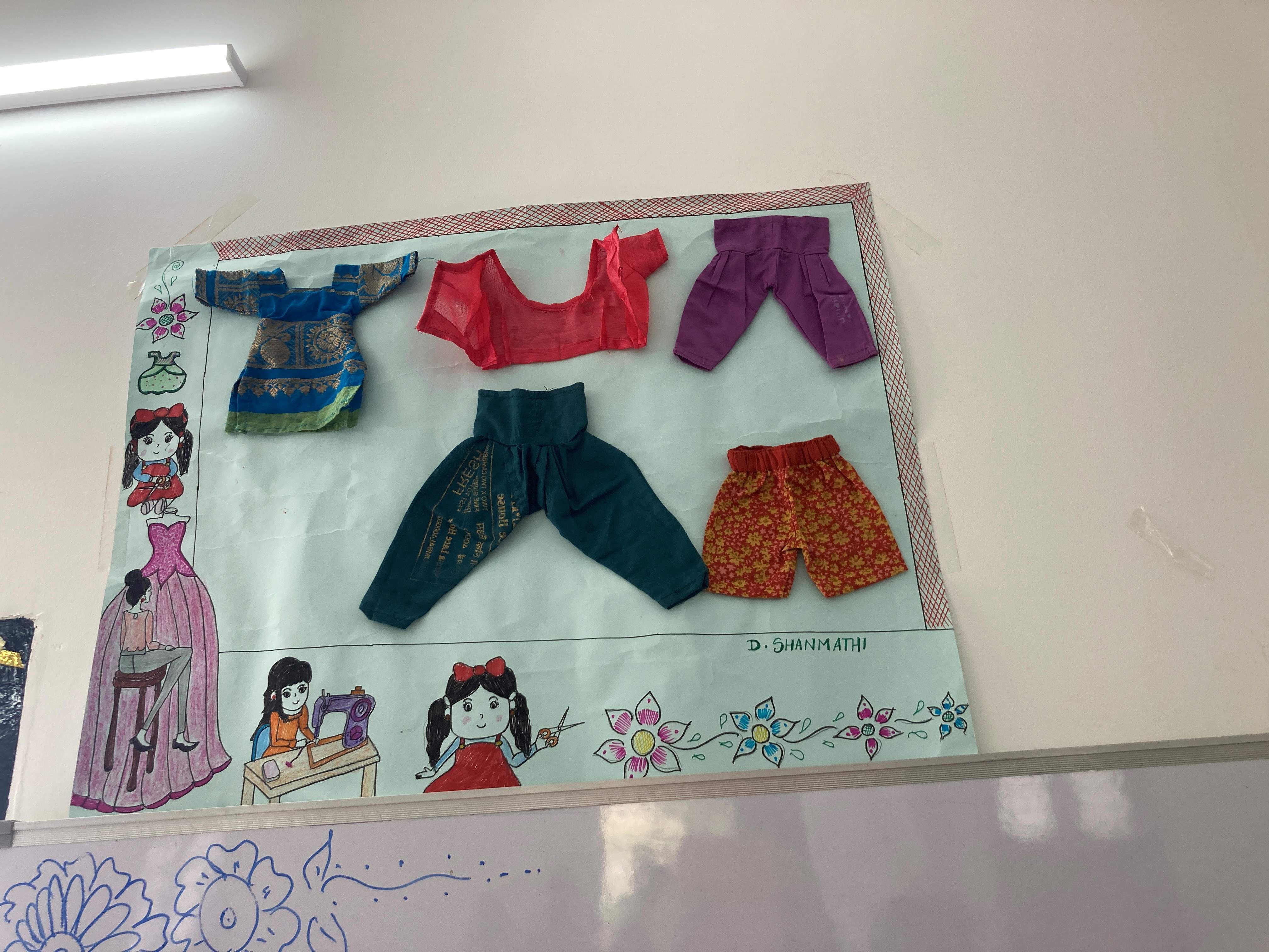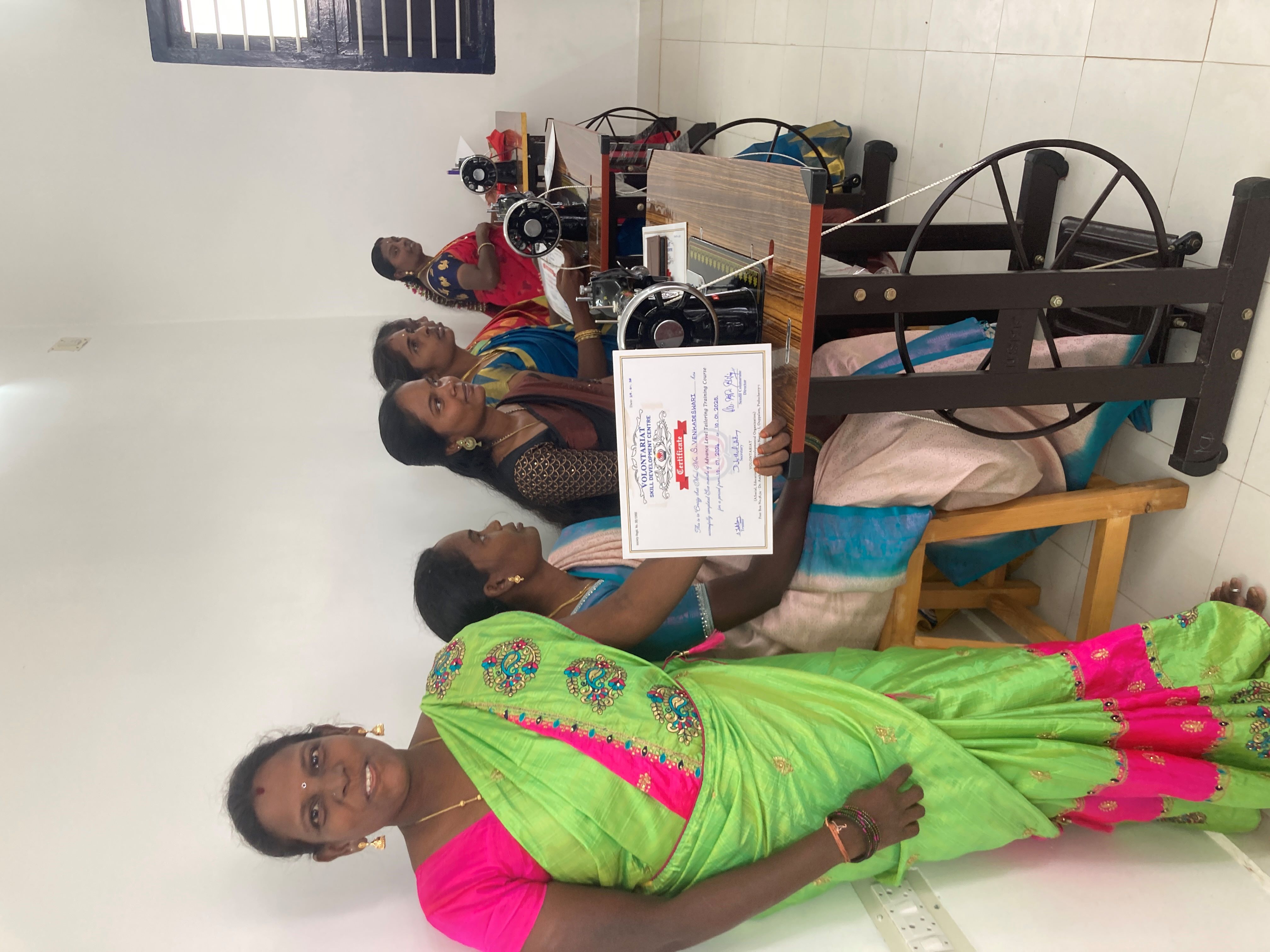 La formation au métier de couturière va leur permettre d'avoir une activité indépendante ou de se faire embaucher chez un tailleur tout en restant dans le village. La formation a duré 6 mois, 3h/jour. L'enseignante intervenait également dans le village proche de Santikuppam, où le Volontariat a également acquis des machines à coudre. Le matin dans un village, l'après-midi dans l'autre.