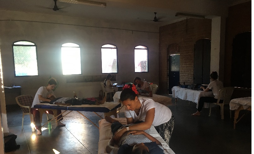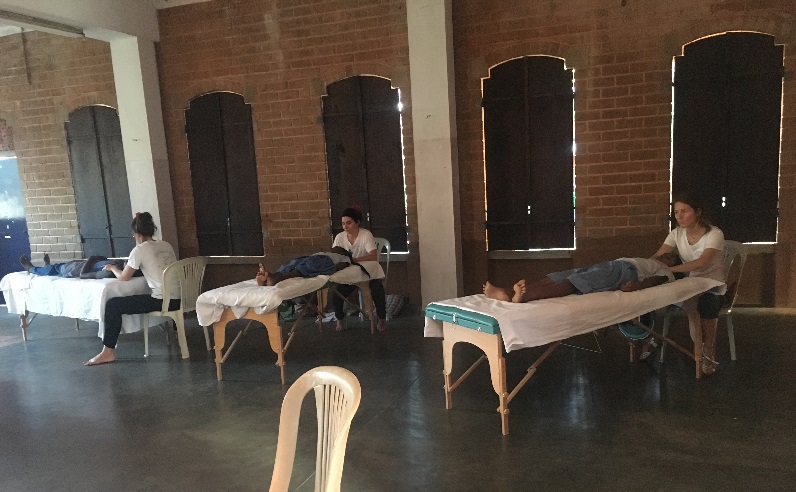 Elles sont 6 jeunes femmes et sont venues au Volontariat de Pondichéry pour 2 semaines, afin de dispenser des soins ostéopathiques à près de 400 enfants (des tout petis de la crèche aux élèves de fin d'études primaires, en incluant les enfants de Kilinjikuppam). Elles diagnostiquent et soignent des enfants souffrant de dysfonctionnement somatique. Les enfants sont parfois craintifs, mais sont vite rassurés par ce massage efficace, d'autant qu'ils sont entourés par des personnes du Volontariat qu'ils connaissent bien : infirmières ou enseignants. Certains d’entre eux qui se plaignaient de maux d’estomac, de douleurs articulaires, de constipation, ont été complètement soulagés. Les parents des enfants des sections de maternelle ont confirmé cette impression.